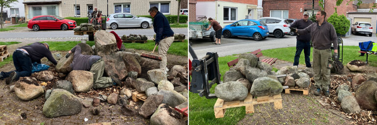 Auch der im Jahre 1999 von der Familie Welling gestiftete Brunnen führte in den letzten Jahren ein eher kümmerliches Dasein. Er wurde vom Schlamm befreit. Das war ein Kraftakt, weil die schweren Steine beiseitegelegt werden mussten.